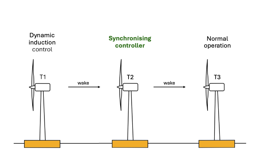 The aim of this PhD is to develop bio-inspired control strategies for performance and load optimisation of floating wind turbines. Wake effects have been long recognised to reduce the power production of wind farms and increase the structural loading on downstream turbines. The wake recovery can be accelerated using active wake mixing strategies, which attempt to shorten the wake behind the first row of turbines in a wind farm and, as a result, increase energy production in the following row of turbines. Dynamic induction control strategies show promising results, but it has been left unexplored if the second row of turbines and successive rows should also deploy dynamic induction control and if it should be synchronised with the incoming dynamic flow profiles.
